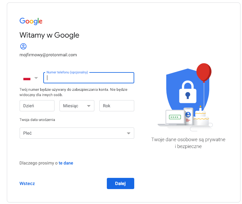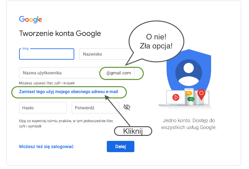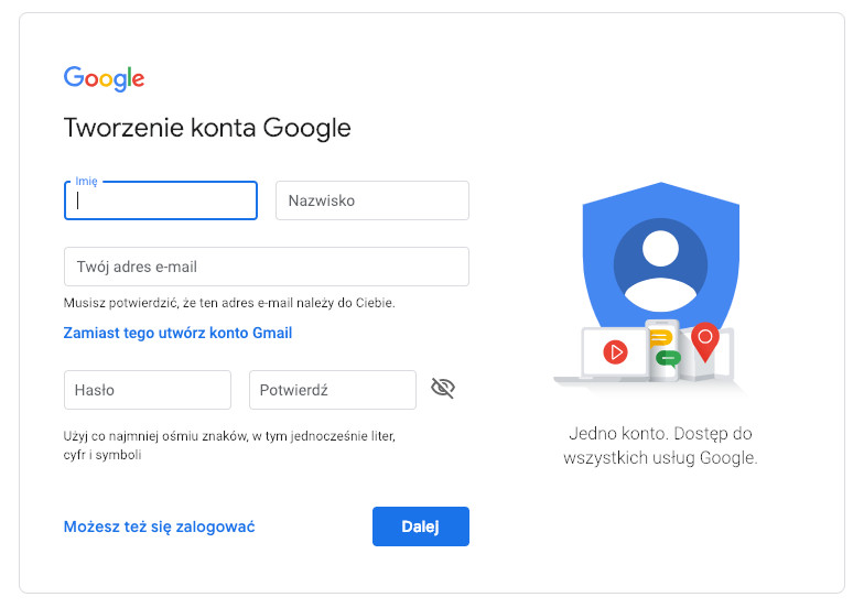 Tworzenie konta Google bez gmail