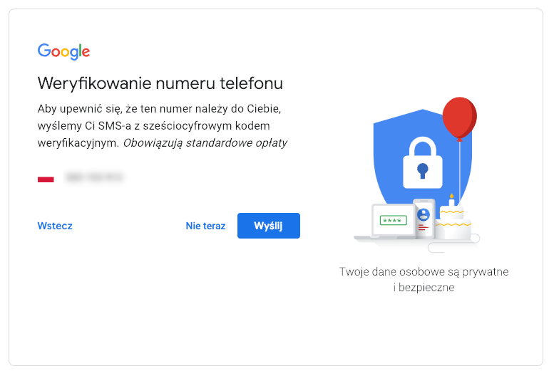 Nie ma innej drogi - musisz podać numer telefonu. I to numer na który przyjdzie Twój kod weryfikujący SMS-em. Polecam wpisać prawdziwy, bo będzie kłopot :) W przypadku danych dotyczących daty urodzenia i płci sugeruję wpisać prawdziwe dane albo przynajmniej zrobić zrzut ekranu wpisanych danych i wysłać go do siebie. Przy odzyskiwaniu hasła zazwyczaj jest potrzebny aktywny numer telefonu podany przy tworzeniu konta, ale czasami zdarzają się też odpowiedzi na pytania dot. urodzin i płci ;)