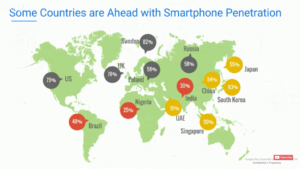 W Azji prym wiedzie Singapur i Emiraty Arabskie, w których aż 90% ludności jest podłączona do Internetu przez urządzenia mobile. Dalej uplasowała się Południowa Korea 83% oraz Japonia i Chiny około 54%. W zestawieniu krajów przodujących w Europie znalazła się Polska z 58% penetracją telefonów podłączonych do Internetu. Natomiast liderami są Szwedzi z 82% i Wielka Brytania z 58%. Indie (30%), Nigeria (25%) czy Brazylia (48%) są krajami w których bardzo często pierwszym urządzeniem podłączonym do Internetu jest właśnie smartfone. Nie zaś jak w Polsce doświadczyliśmy PC lub laptop. Zatem urządzenia mobile w tych krajach są punktem wejścia do Internetu. Rynki te także odnotowują gwałtowne wzrosty smartfonów nie natomiast, jak niektórzy mogliby się spodziewać, starszych telefonów typu cegła Nokia :).