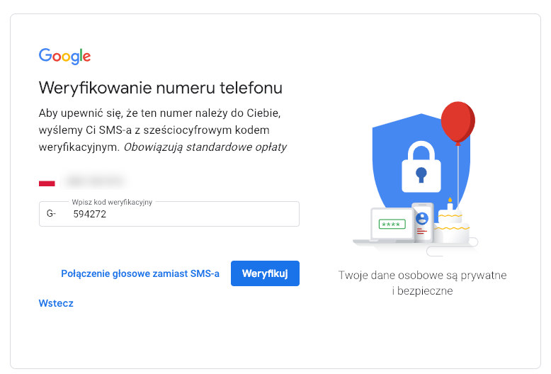 Nie ma innej drogi - musisz podać numer telefonu. I to numer na który przyjdzie Twój kod weryfikujący SMS-em. Polecam wpisać prawdziwy, bo będzie kłopot :) W przypadku danych dotyczących daty urodzenia i płci sugeruję wpisać prawdziwe dane albo przynajmniej zrobić zrzut ekranu wpisanych danych i wysłać go do siebie. Przy odzyskiwaniu hasła zazwyczaj jest potrzebny aktywny numer telefonu podany przy tworzeniu konta, ale czasami zdarzają się też odpowiedzi na pytania dot. urodzin i płci ;)