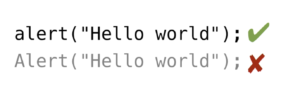 Przykład sytuacji w której JavaScript nie wywoła metody w drugiej linijce z powodu wielkiej litery (nieprawidłowo wywołanej):