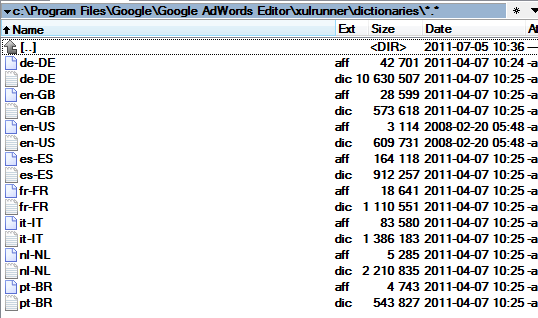 Lokalizacja katalogów różni się w zależności od systemu operacyjnego. Poniżej lista Windowsów: Ścieżka dla Windows 7 : c:\Program Files\Google\Google AdWords Editor\xulrunner\dictionaries\ Jeżeli została zmieniona lokalizacja instalacji AE to odpowiednio: [wybrana-sciezka]\xulrunner\dictionaries\ Dla Windows XP i Windows Vista : c:\Users\_[nazwa-uzytkownika]_ \AppData\Local\Google\Google AdWords Editor\xulrunner Jeżeli obydwa pliki .aff i .dic zostały przekopiowane do odpowiedniego katalogu, to można przejść do kolejnego kroku. Mogą występować problemy przy kopiowaniu w niektórych systemach, jeżeli nie posiadamy uprawnień administratora. W takim wypadku należy się zalogować jako użytkownik z prawami administratora.